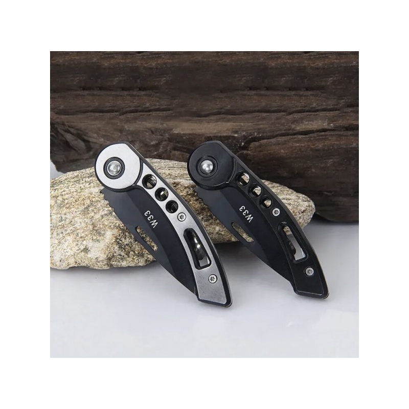 Retkeilyveitsi, ruostumattomasta teräksestä valmistettu taskuveitsi. Taktinen monitoimiveitsi ulkona selviytymiseen. Väri: musta/hopea