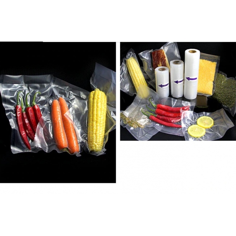 Yhteensopiva kaikille vakuumipakkauskoneille: Toimii kaikkien vakuumipakkauskoneiden kanssa, kuten GERYON, Seal a Meal, Nesco, Weston, Cabela's, Ziploc jne. Toisella puolella on tekstuuria ja toisella puolella kirkasta maksimaalista ilmanpoistoa varten.