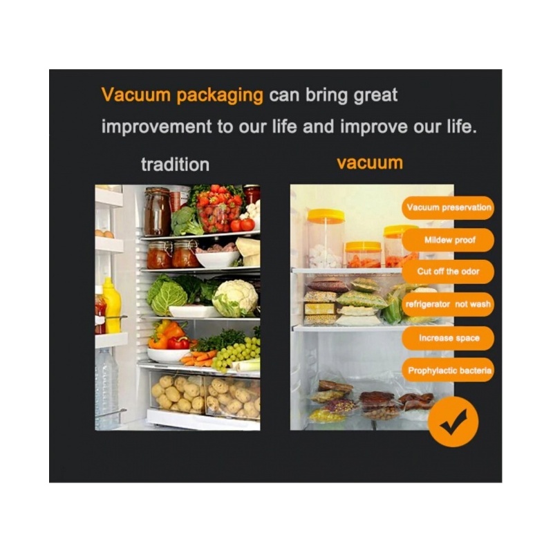 Yksilöllinen pituus: Ilman ennakkoleikkausta voit luoda oman pituuden. Elintarvikkeiden säilyvyys on 3-6 kertaa pidempi, säilytä tuoreus, aromi ja ravinteet sisällä.