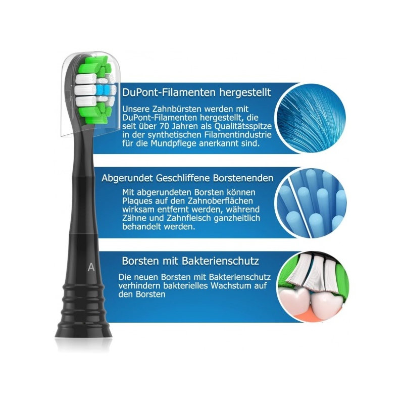 Kestävät: harjaspäät on valmistettu korkealaatuisista amerikkalaisista DuPont-harjaksista, jotka kestävät pidempään. Ne tarjoavat hellävaraisen puhdistuskokemuksen ilman huolta harjasten irtoamisesta.