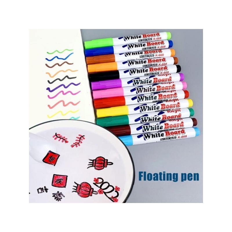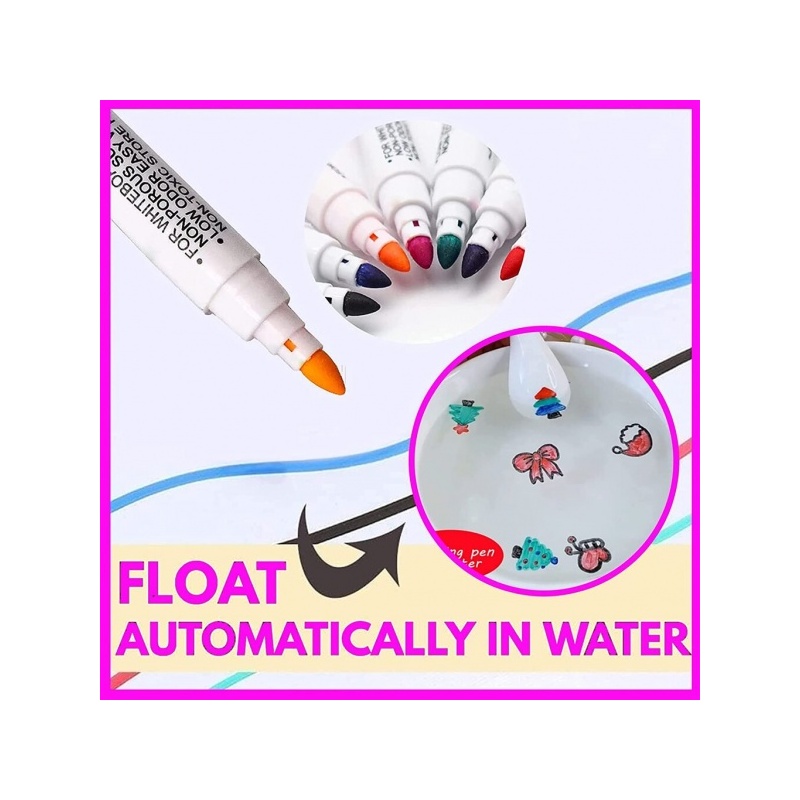 Vesipohjainen muste ei liukene veteen, ja piirretyt kuvat kelluvat helposti pinnalla.