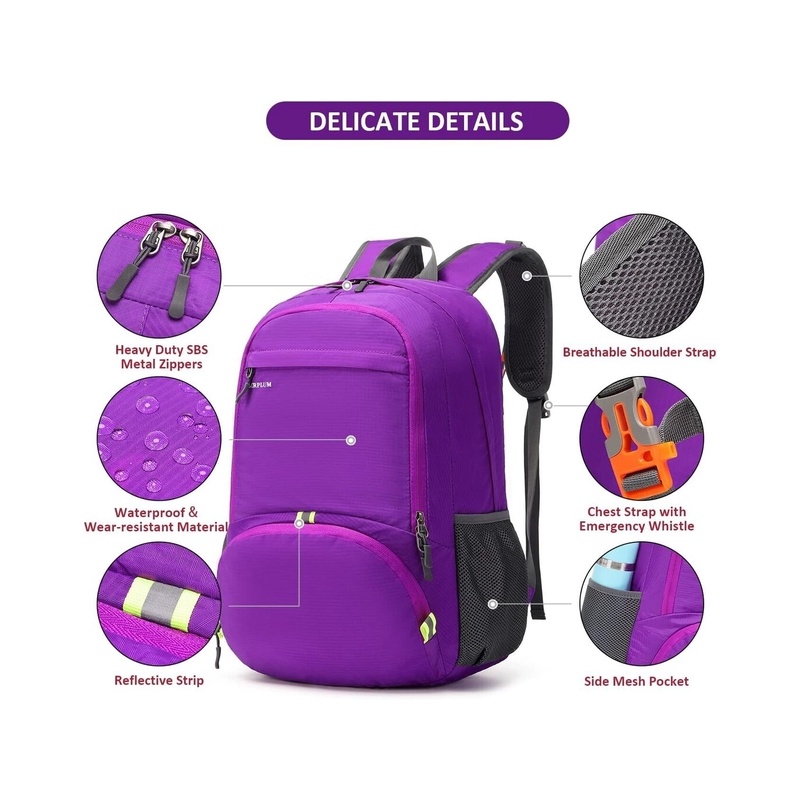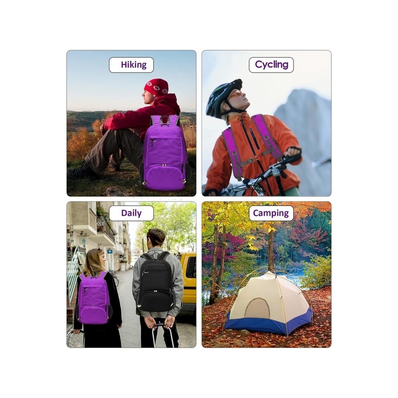 MONIPUOLINEN JA KÄTEVÄÄ Ihanteellinen jokapäiväiseen käyttöön tai päivittäiseen työmatkaan, lomalle, matkustamiseen, retkeilyyn, retkeilyyn ja ostoksille. Pakattu reppu voidaan tarvittaessa avata ja käyttää kävelylle tai taittaa ja säilyttää pussissa, kun sitä ei tarvita. Tämä on loistava lahja kaikille.