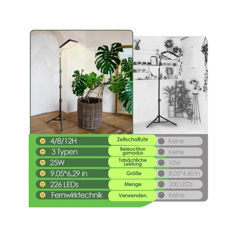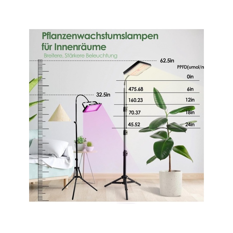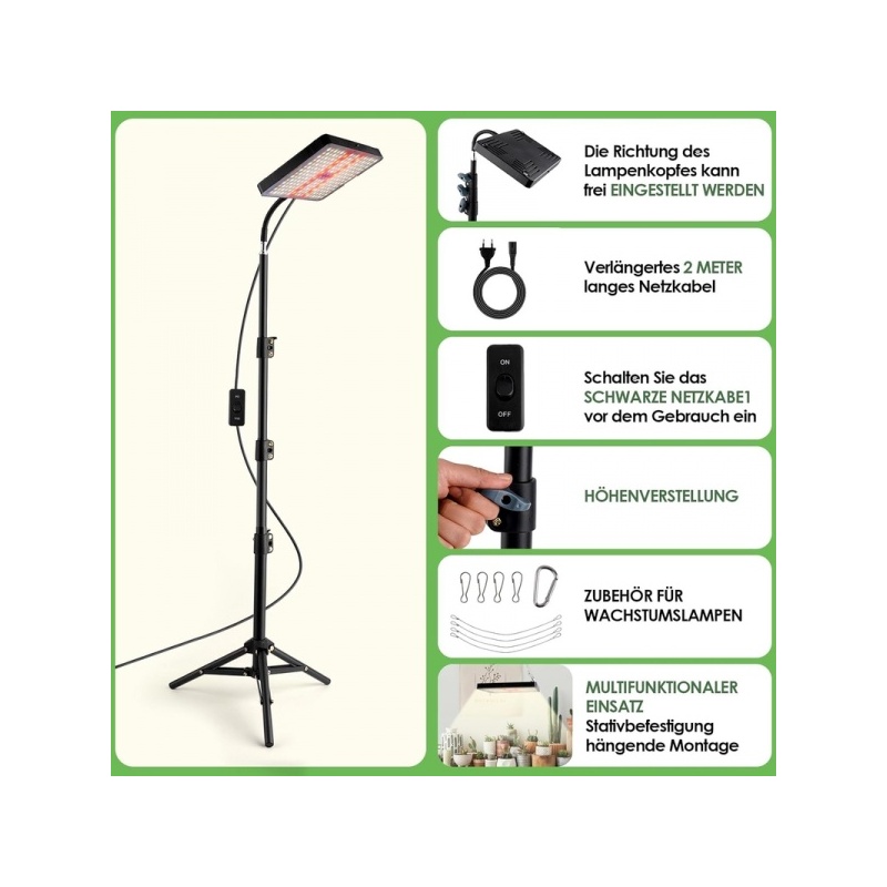 Helppo asentaa ja monipuolinen: joustavalla pidikkeellä ja säädettävällä jalustalla varustettu lamppu on helppo asentaa. Korkeus ja kulma voidaan säätää helposti kasvin tyypin mukaan. Sopii taimille, mehikasveille ja ruukkukasveille.