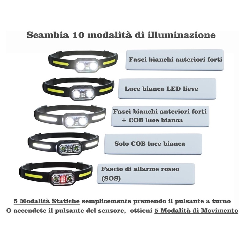 Urheilullinen ladattava otsalamppu sensorilla Joqboq