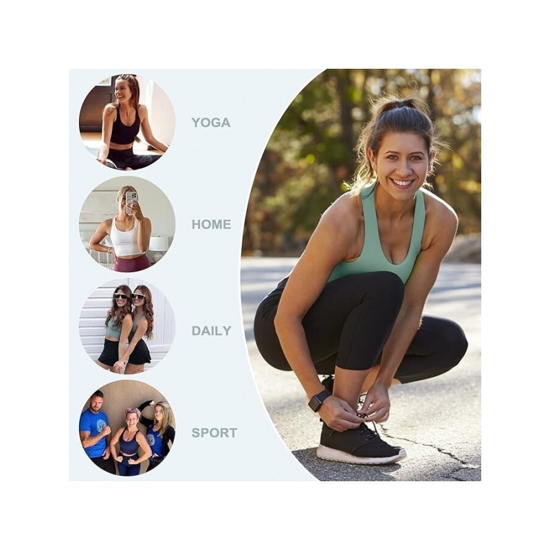 Jooga-rintaliiveissä on olkaimet, jotka tarjoavat hengittävyyden ja pehmeän käyttötuntuman. Liivit on valmistettu erittäin joustavasta kankaasta: 75% polyamidia ja 25% elastaania, mikä takaa maksimaalisen mukavuuden ja mahdollistaa täydellisen liikkumisvapauden.