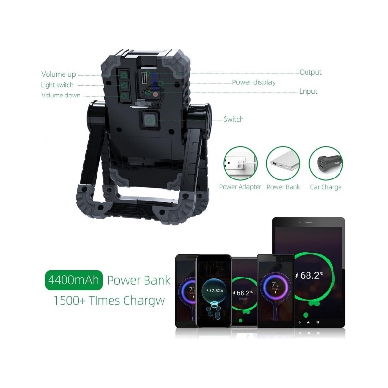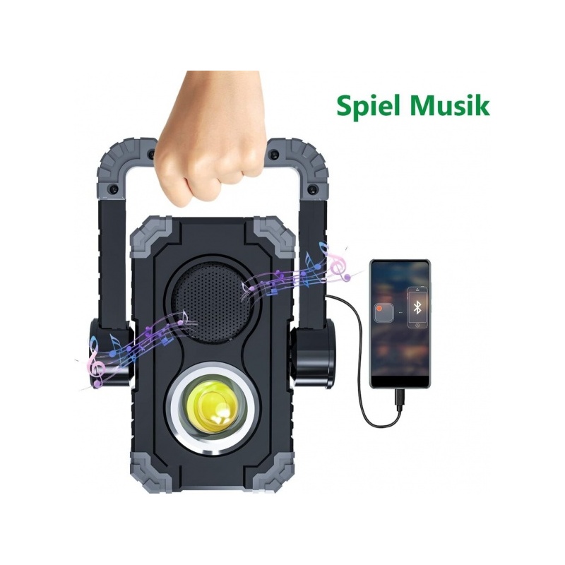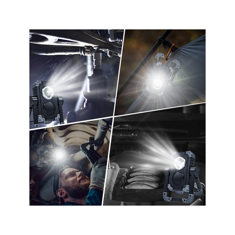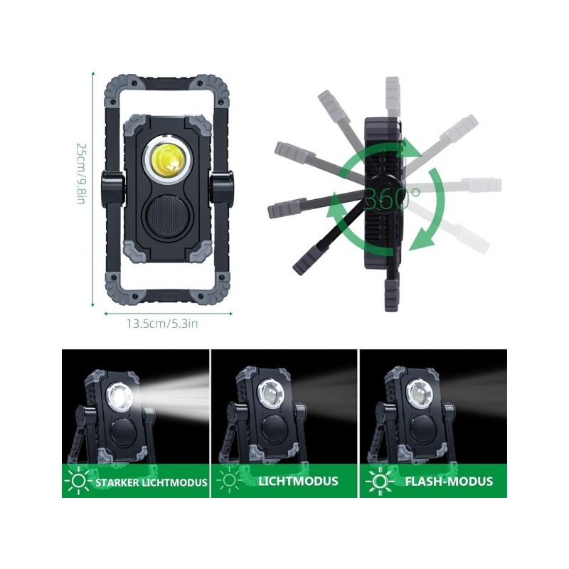 VICALO LED-työvalo Bluetooth-kaiuttimella 10 W LED-valonheitin Sisäänrakennettu akku 4400mAh 1500lm työvalo 360° kääntyvällä alustalla autonkorjaukseen retkeilyyn Vaellushätävirtalähde [Energialuokka A]