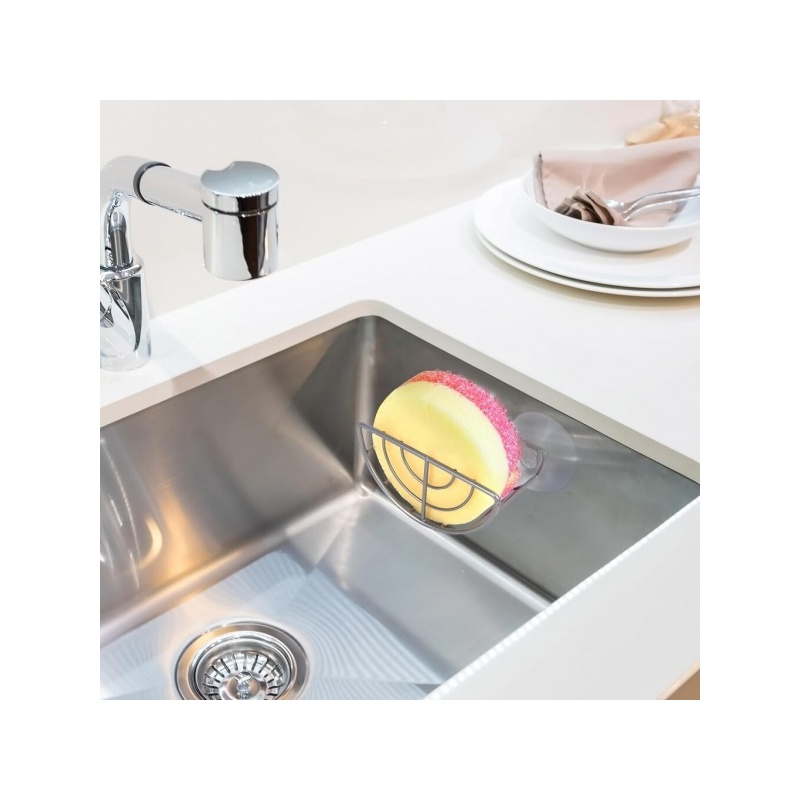 HELPPO ASENNUS Kiinnitä imukuppi pesualtaaseen ja ripusta puolipyöreä sienen pidike, mikä tekee asentamisesta erittäin kätevää. Voit luoda siistin ja toimivan tiskialtaan hetkessä.