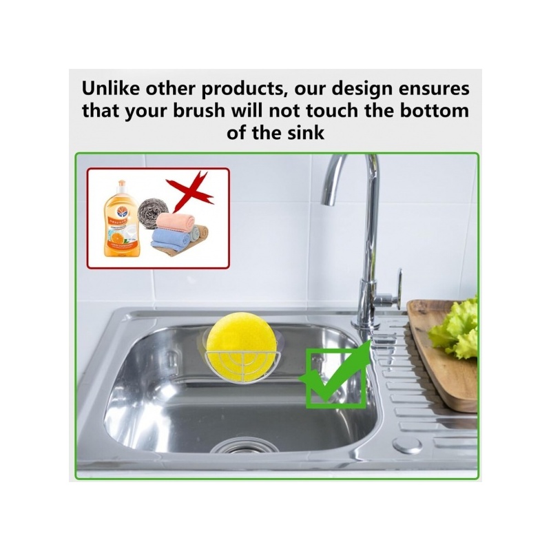 Ainutlaatuinen muotoilu Puolipyöreä ruostumattomasta teräksestä valmistettu sienen pidike on suunniteltu pitämään sieni siistinä ja kätevänä astioiden pesussa. Sen muodikas muotoilu täydentää minkä tahansa keittiön sisustuksen.