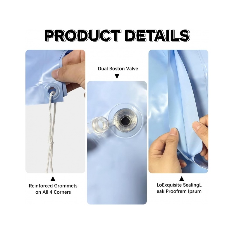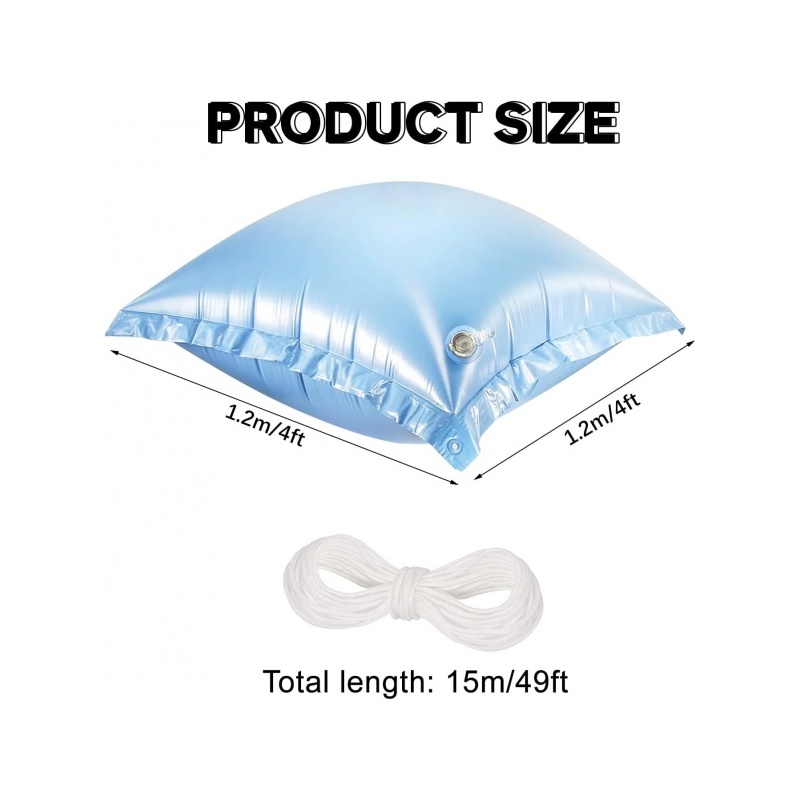 Mukana kiinnitysköysi: tyynyn reunoissa on 4 reikää, jotka voidaan kiinnittää 15 m köydellä altaan keskelle.