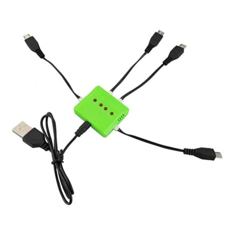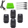 Pakkaus sisältää: 4 litiumakkua, 4-in-1-laturi ja 4 sovitinkaapelia.