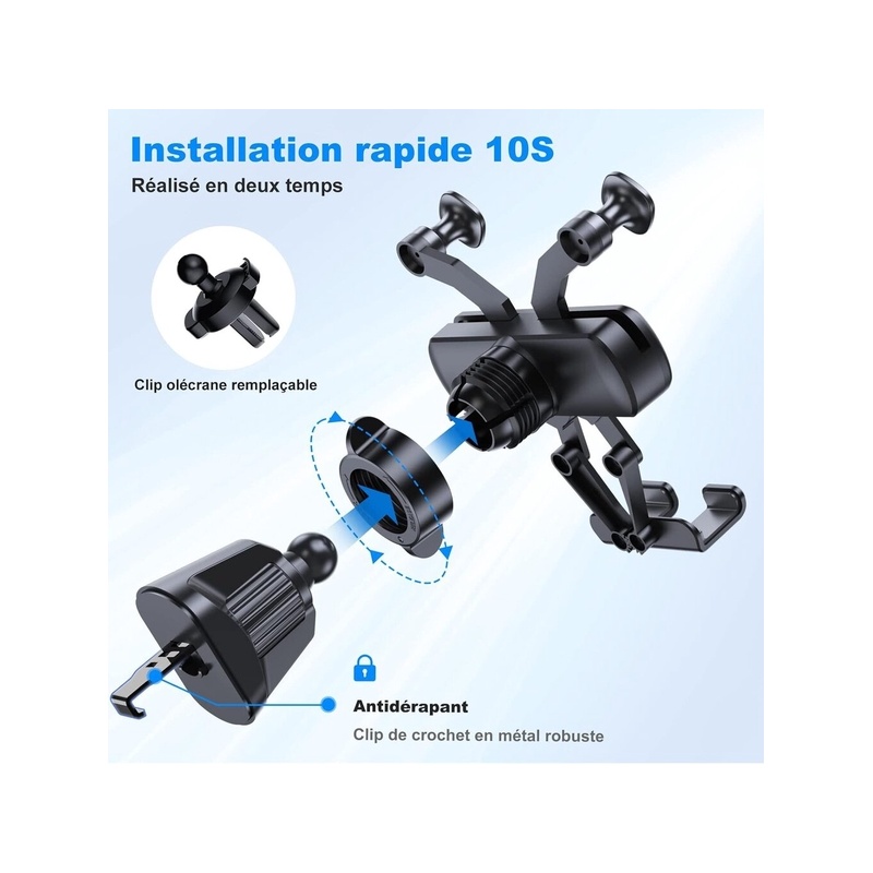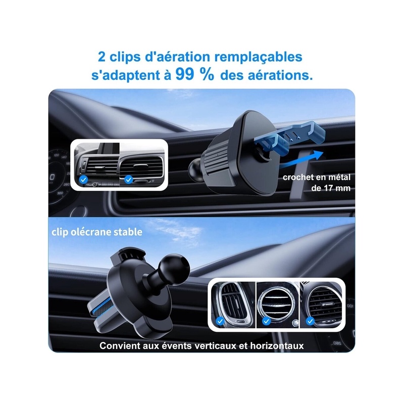 【Ohutu ja stabiilne】 Autotelefoni hoidik kasutab nelja punkti kinnitustehnoloogiat, konstruktsioon on stabiilne. Libisemiskindlast pehmest kummist valmistatud silikoonklambrid ja külgmised tuulutusklambrid on vaiksed ning kaitsevad teie nutitelefoni ja tuulutusavasid kriimustuste ja libisemise eest, riskimata isegi konarlikul teel sõites.