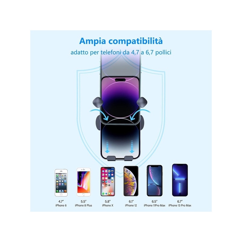 【Universaalne ühilduvus】 Autotelefoni hoidik ühildub laialdaselt kõigi telefonide ja seadmetega, mille laius on 4,7–6,7 tolli. Näiteks toetab see iPhone6/7/8 Plus/X/XS/11Pro Max/12/13 Pro Max, Samsung, Huawei, Xiaomi, OnePlus, nutitelefone ja GPS-seadmeid.