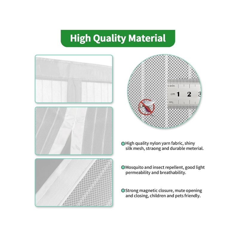 Kõrgeim kvaliteet ja vastupidavus – valmistatud tugevast nailonvõrgust, mis tagab kiire ja vaikse automaatse sulgumise. Tugevad magnetid hoiavad võrku kindlalt paigas ja tagavad pika kasutusea. Ei mingit vajadust seda igal suvel vahetada!