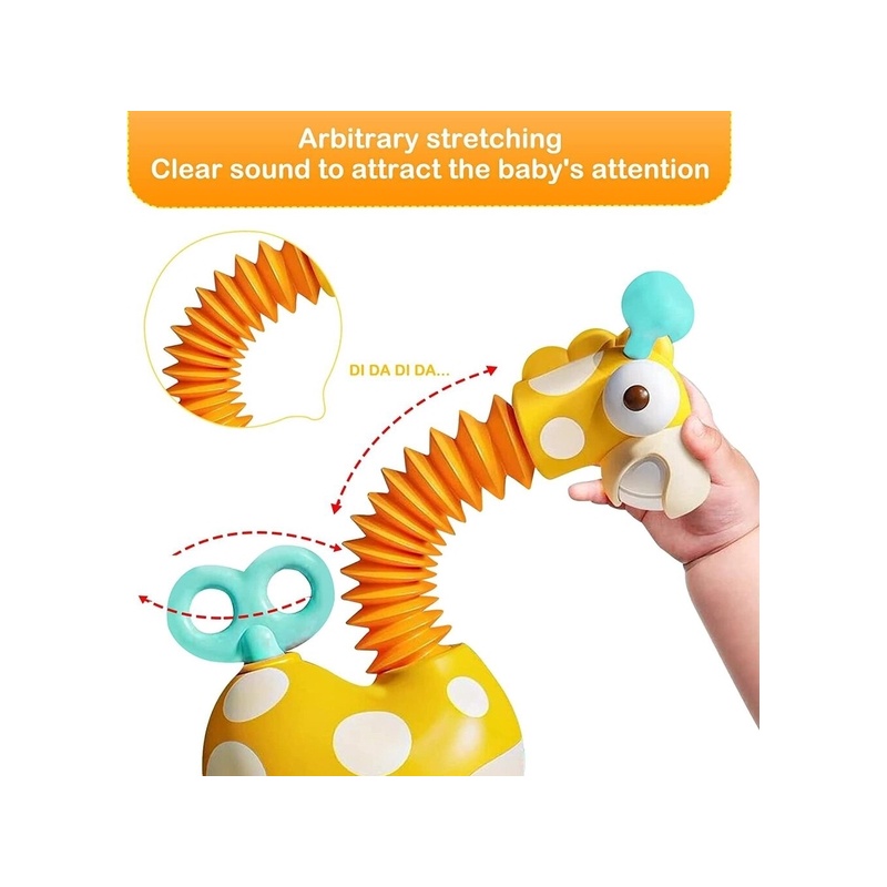 Beebi sensoorsed mänguasjad: kaelkirjaku kael võib vabalt venida ja pöörleda, tõmmates kaelkirjaku väikseid jalgu vasakule ja paremale, kuulete ja tunnete trossist erinevaid helisid ja vibratsioone.