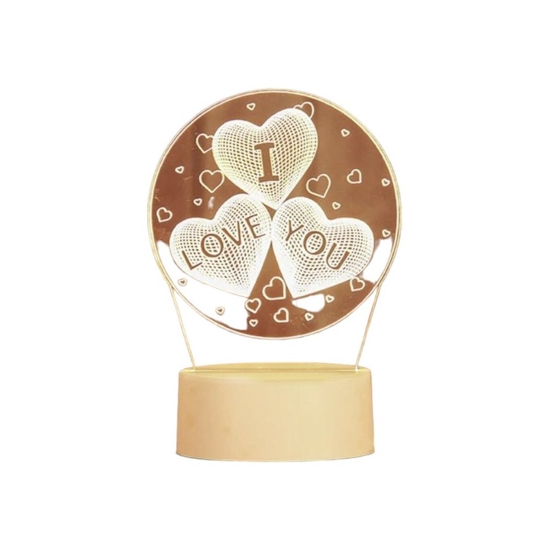 3D akrila galda lampa I Love You, silti balta GEEKEO