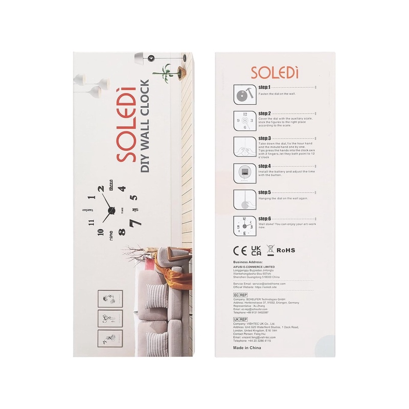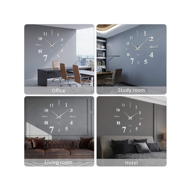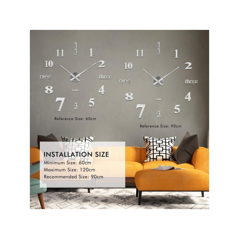 Seinakella 3 värvi: suured kaasaegsed seinakellakleebised lisavad seinakleebile kella elemente ja funktsiooni. See on hea viis integreerida kella üldisesse disainistiili. Valikus on kolm erinevat 3D stiilis SOLEDI seinakella (must hõbedane, kuldne). Saate valida endale meelepärase seinakaunistuse stiili.