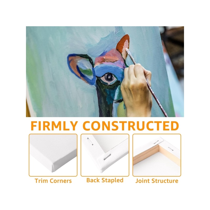 Praktiline disain: Raam on ilma naelteta, servad on täpselt sobitatud. Lõuend on kaetud kahe kihi valge krundiga, mis kaitseb kulumise eest ja tagab hea värvi imendumise.