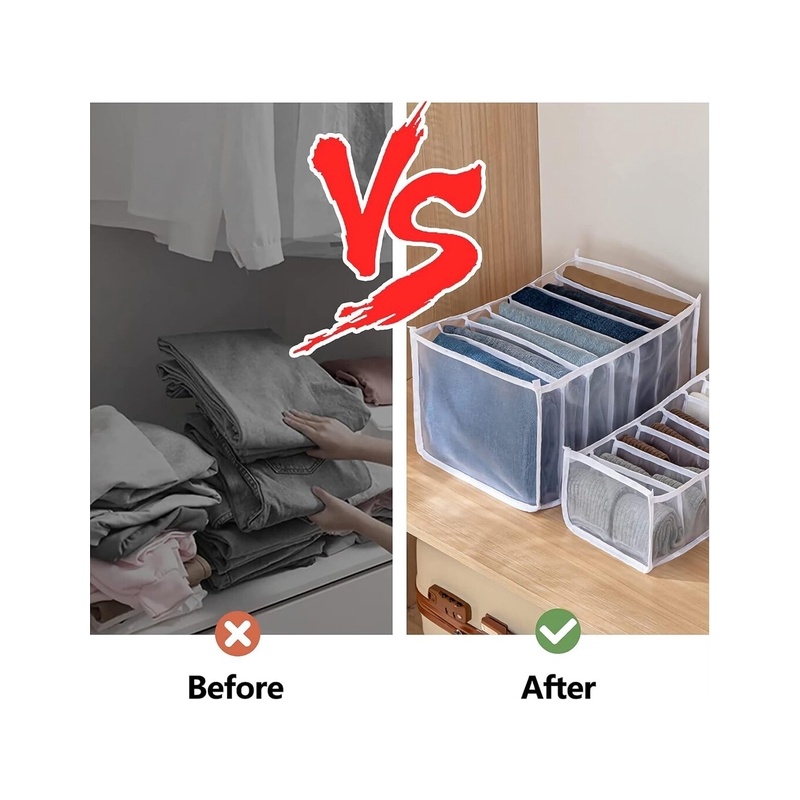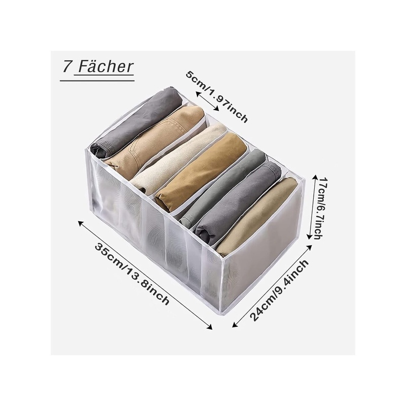 Riidekapi organiseerija: suurus: 35 cm x 24 cm x 17 cm Kokkupandavad hoiukastid säästavad kasutamisel ruumi. 7 sektsiooni on mõeldud riiete sorteerimiseks ja hoidmiseks, et vältida segadust. Sahtlite organiseerimise süsteemi saab kasutada mitmes virnas. Hoidke oma kapid ja sahtlid korras.