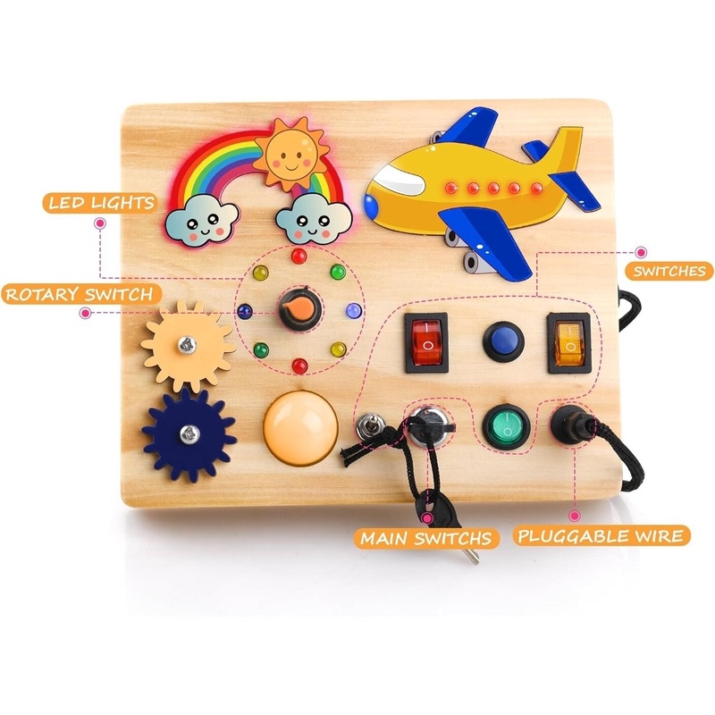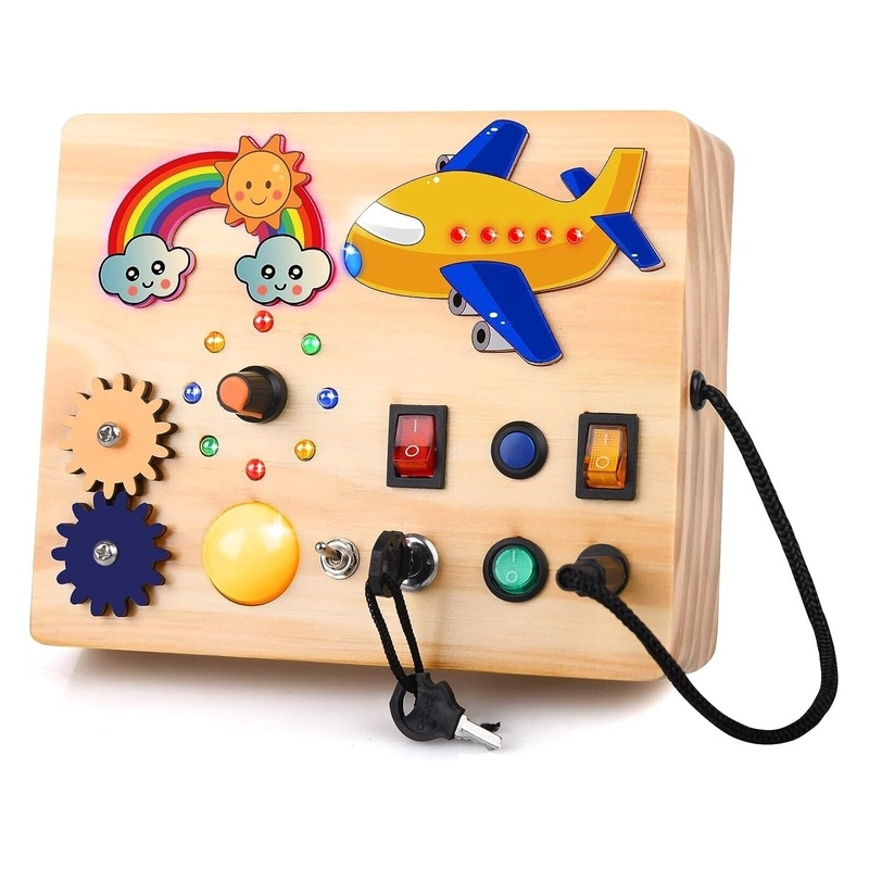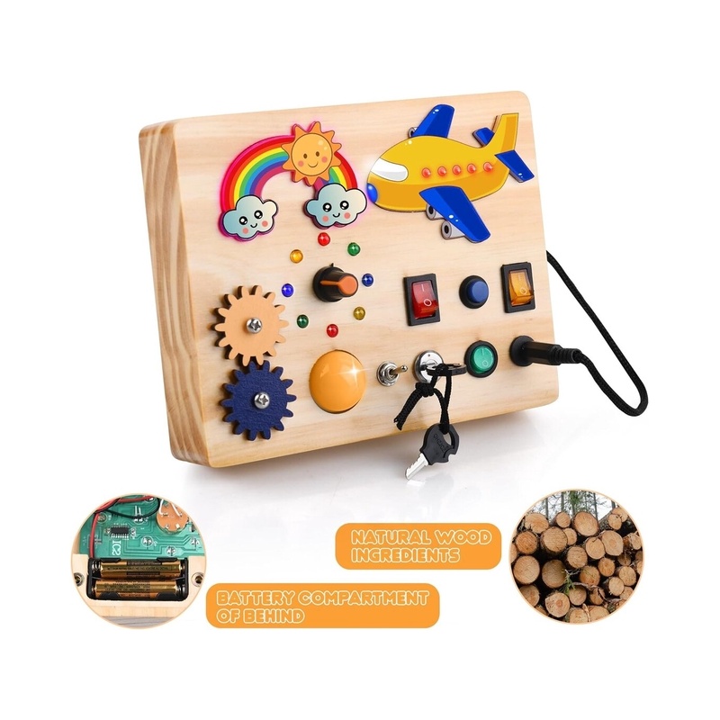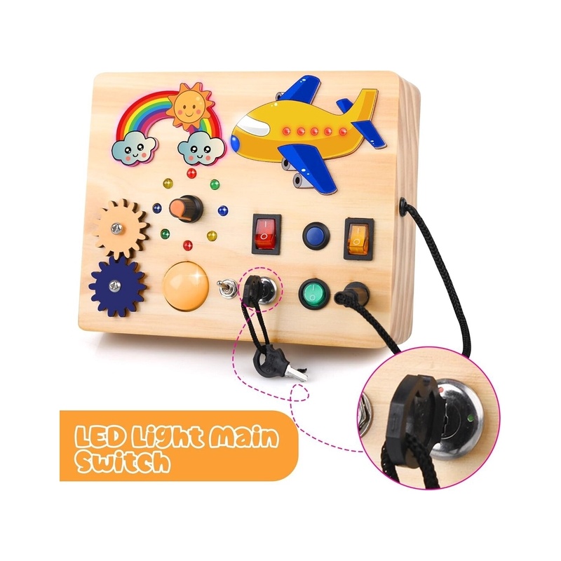 Bērnu koka LED rotaļlieta Aranee Montessori Busy Board