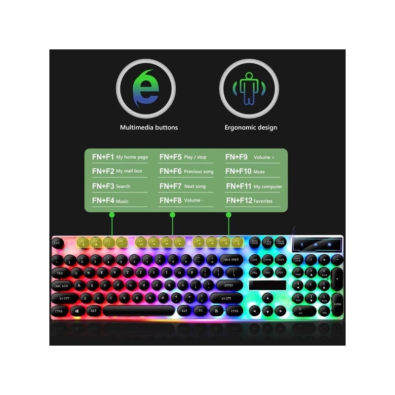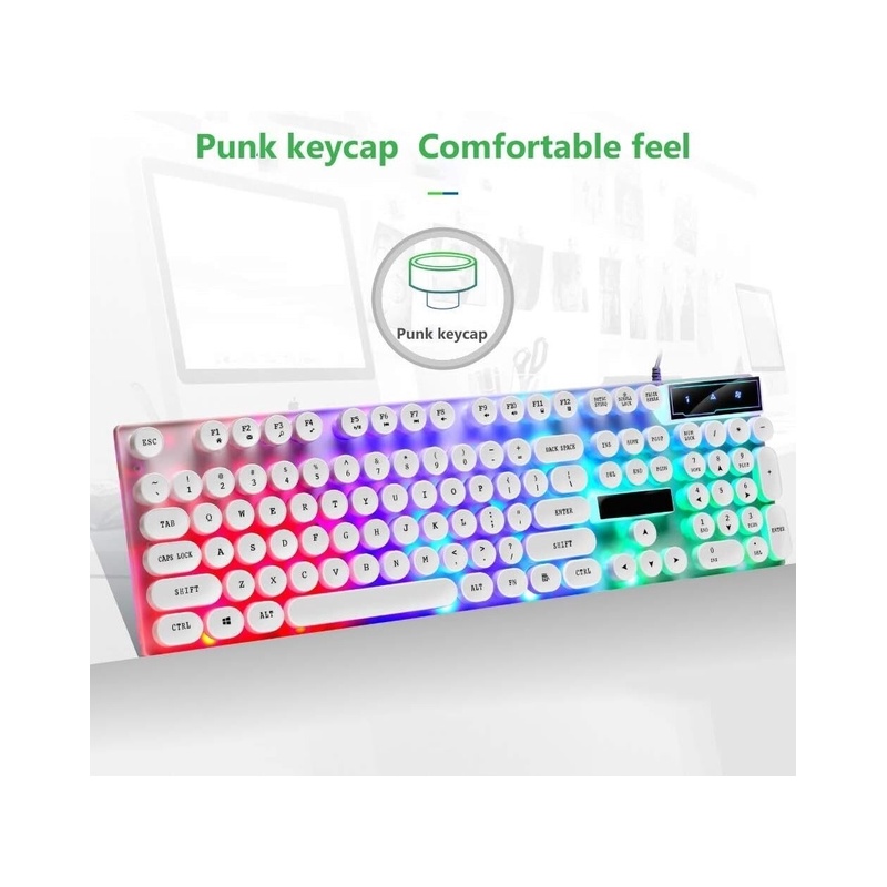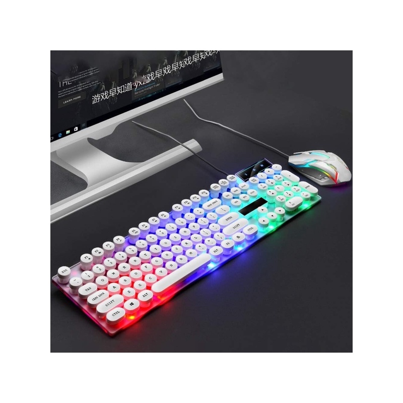 Limeide GTX300 vadu USB LED fona apgaismojuma tastatūra un pele, balta