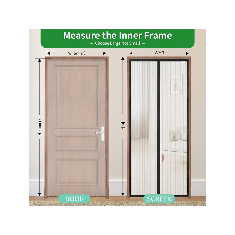 IDEAALNE SUURUS TEIE UKSELE: võrgu mõõdud on 105 x 205 cm (L x K) ja see sobib tavalistele, liug-, metall- või puitustele sisemise raamiga kuni 101 x 201 cm. Märkus: võrku ei saa lõigata. Valige sobiv suurus. Küsimuste korral võtke meiega ühendust!