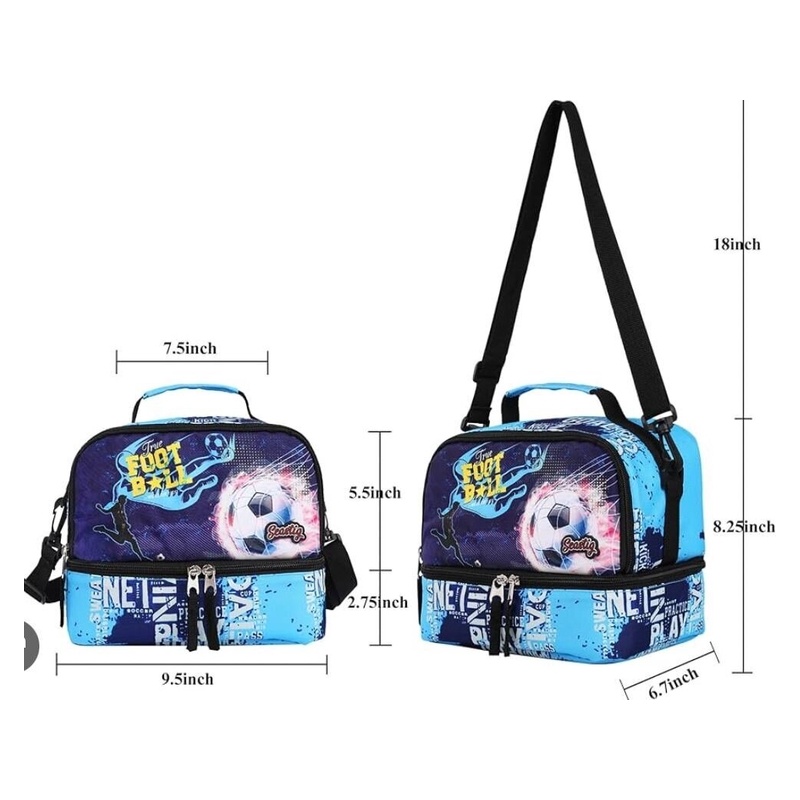 Suur mahutavus: mõõtmed: 9,5 tolli (24,1 cm) x 6,7 tolli (17 cm) x 8,25 tolli (21 cm). Meie lõunakotil on kaks sektsiooni. Ülemises sahtlis on palju ruumi võileibade, krõpsude, puuviljade, küpsiste, jookide, külmutatud suupistete, toidujääkide, pikniku või lõunasöögi jaoks. Alumine sahtel on mõeldud spetsiaalselt õpilastele, et hoida oma lõunasööki ja tagada, et need ei kukuks ümber.