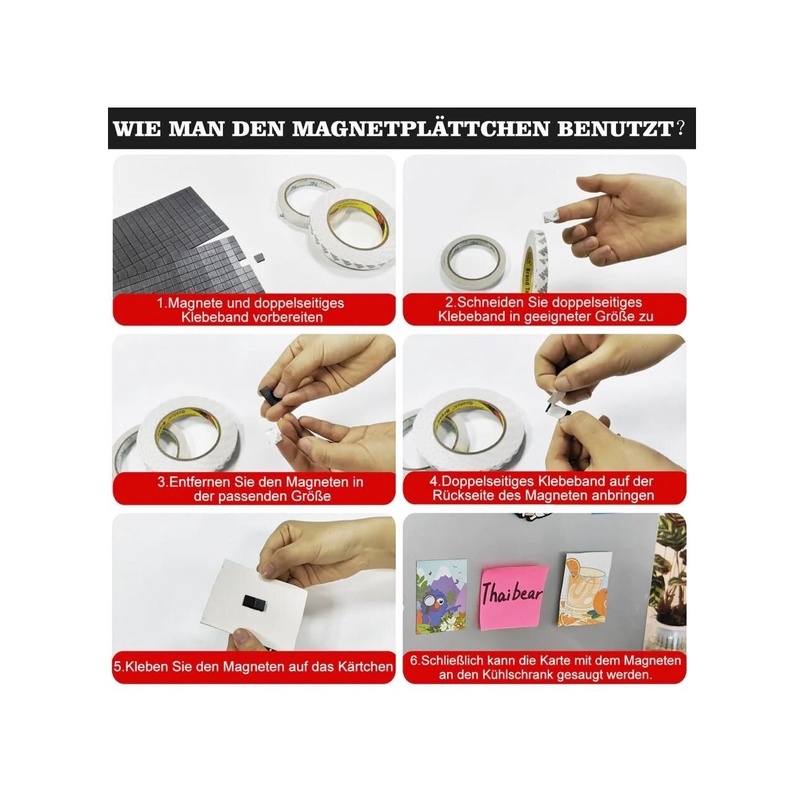 Lihtne kasutada: need painduvad, kleepumata magnetteibid on alternatiiviks magnetkleebistele, magnetlindile ja magnetkiledele. Väikesi magneteid on lihtne paigaldada. Ideaalne õpetajatele, õpilastele, õdedele, kontoritöötajatele, isetegemise entusiastidele, emadele, käsitöölistele ja inimestele, kes armastavad segadust tekitada.
