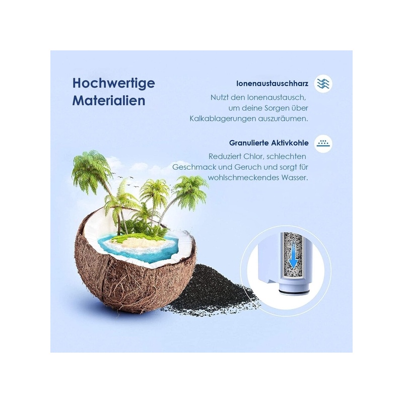 Tõhus viilimine: ühekordselt vahetatav vaik takistab tõhusalt katlakivi ladestumist. Lisaks suudab kookospähkli koortest pärit kvaliteetne aktiivsüsi endasse imada kloori jääkaineid, mis parandab teie kohvi maitset.