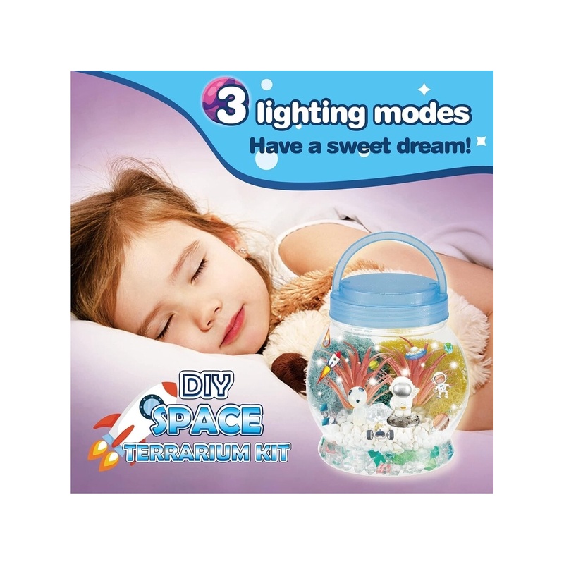 【Космический ночник своими руками】Этот игрушечный набор «Космический террариум с ночником своими руками» позволяет детям использовать свои творческие способности, чтобы превратить эту банку в свой собственный волшебный космический сад с гирляндами, развивая свои практические навыки и воображение. Они также могут разместить этот космический ночник в своей спальне в качестве украшения.