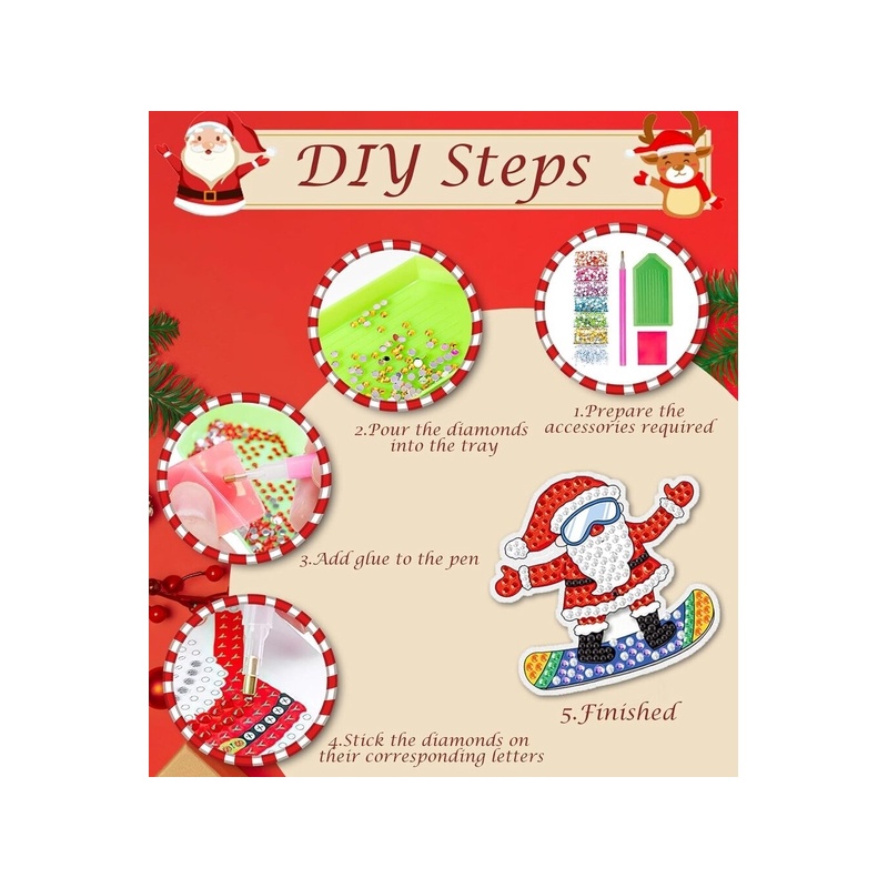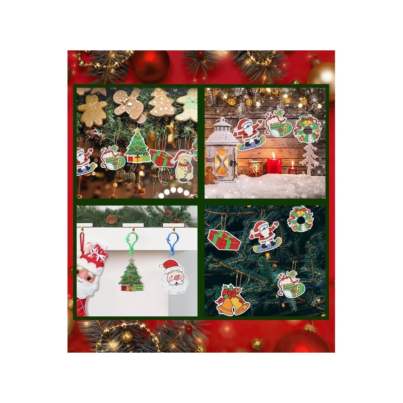 Широкий спектр применения: После изготовления алмазной картины вы можете повесить ее на рождественскую елку, горшечные растения, камин, венок или повесить работу на сумки, рюкзаки, велосипеды и ключи. Вы также можете использовать их в качестве подарочных карточек, поздравительных ярлыков и рождественских брелоков.