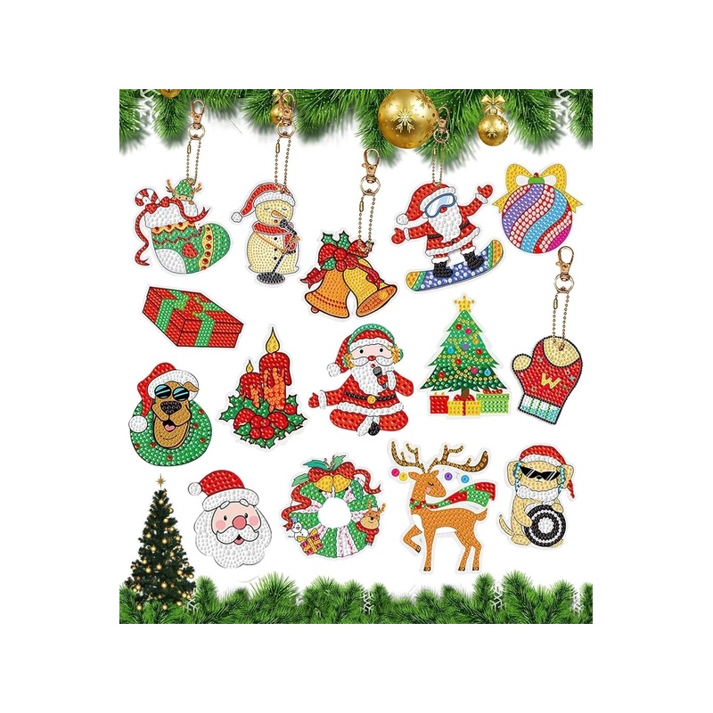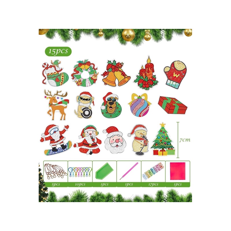 Рождественские тематические поделки: в комплект входят 15 классических узоров, таких как венки, носки, колокольчики, свечи, варежки, олени, подарочные коробки, Санта-Клаус, снеговики, рождественские елки и т. д. Разработаны с рождественскими элементами, полны праздничной атмосферы, идеально подходят для украшения рождественских елок, дома, офиса, веранды.