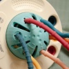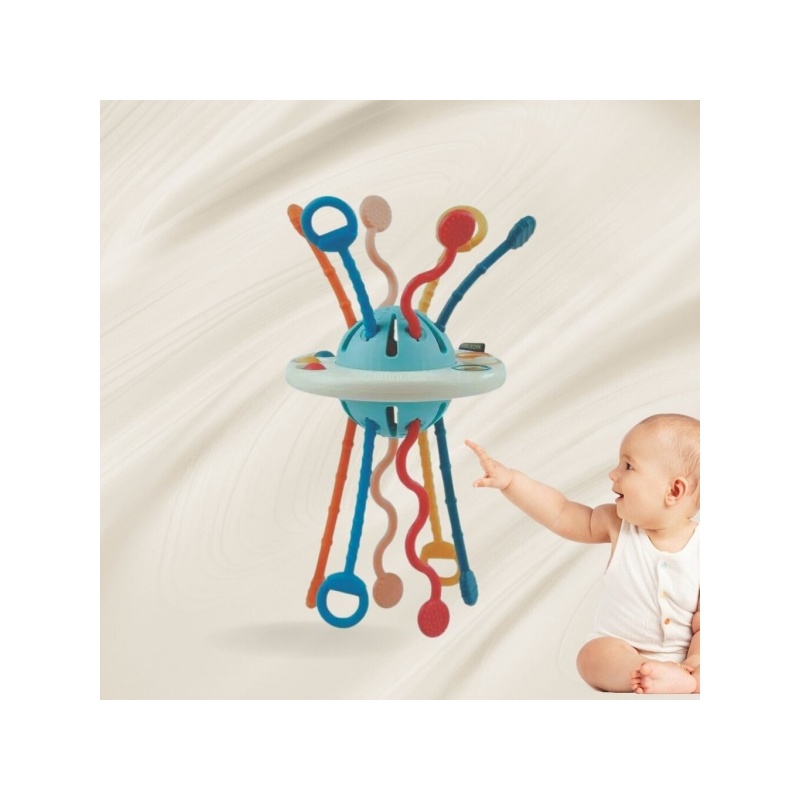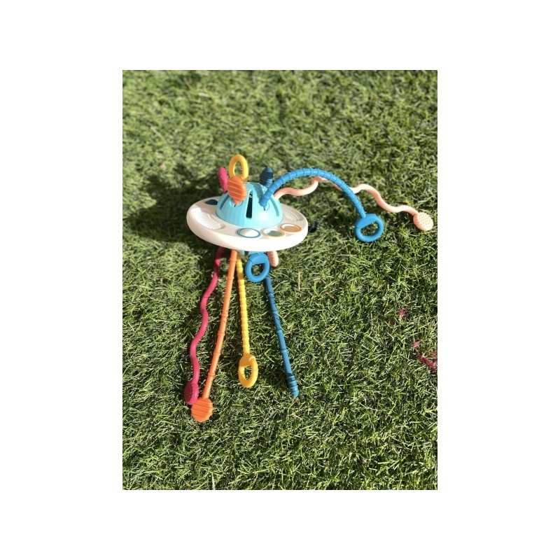 Дорожные игрушки для малышей: На боковой стороне игрушки НЛО расположены мягкие кнопки, которые побуждают ребенка прикасаться и нажимать, улучшая гибкость маленьких пальчиков. На другой стороне находится 1 кнопка и 3 отверстия. Слегка нажмите кнопку от одного отверстия к другому, почувствуйте щелчок и прикосновение. Текстурированные веревочки можно тянуть из одной стороны в другую, позволяя малышу ощущать разные звуки и вибрации.