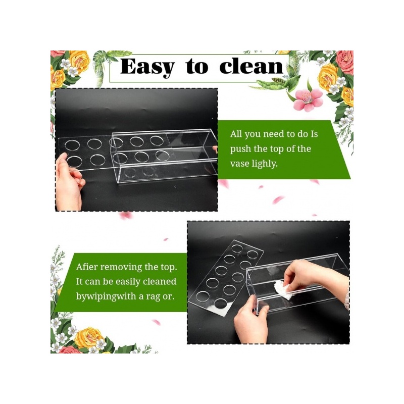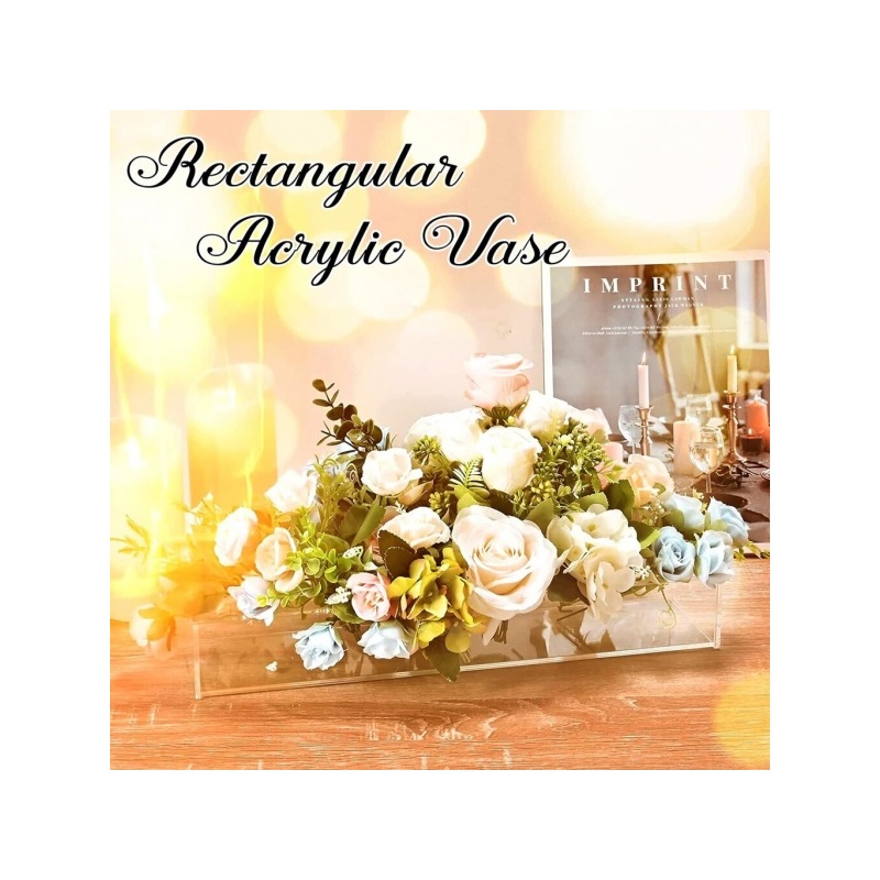 - 【Небьющаяся акриловая ваза для цветов】Важно выбрать правильную высоту центрального предмета. Благодаря этой низкой акриловой вазе гостям будет легко взаимодействовать друг с другом. Кроме того, они прекрасно смотрятся с цветами всех видов и размеров, свежими или искусственными цветочными композициями. Если вы хотите создать в комнате сказочную атмосферу, эта прямоугольная ваза может придать блеск вашему интерьеру.